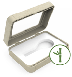Tillverkad av ett eko-hybridmaterial som innehåller 40% fibrig Bambu för att minska användningen av plast. Bambu lådan medium har ett vackert och klart fönster som visar upp din PR produkt inuti. Locket hålls säkert på plats med två små magneter. En bra presentations ide för ditt nästa event.