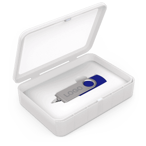Twister Go har två USB-kontakter i ett. Ena änden har den vanliga USB-kontakten som du kan använda på bärbara datorer och datorer. Den andra änden kommer med ett USB-C uttag, lämplig för användning med bärbara enheter som smartphones,surfplattor och digitalkameror. Vi kan Screentrycka eller Lasergravera din logotyp på båda sidor, allt i exakta detaljer.